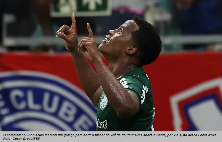 O Palmeiras venceu o Bahia por 2 a 1, neste domingo (05), na Arena Fonte Nova, pela 10ª rodada do Campeonato Brasileiro. O Verdão abriu o placar com um golaço de Arias, no final do… Palmeiras vence o Bahia e aumenta vantagem na liderança do Brasileirão