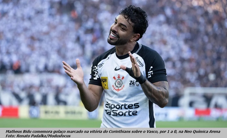 O Corinthians obteve uma importante vitória por 1 a 0, contra o Vasco, pela 13ª rodada do Campeonato Brasileiro, na tarde deste domingo (26), na Neo Química Arena, jogando com um a menos em toda a etapa complementar. O Timão assegurou o resultado com um golaço marcado por Matheus Bidu, ainda no primeiro tempo. Com a vitória, o Corinthians deixa a zona do rebaixamento e sobe para a 14ª posição, somando 15 pontos. Mesma pontuação do Vitória (13º) e ambos com um ponto a mais que Atlético-MG (15º), Internacional (16º), primeiro fora do Z-R, e Santos (17º), primeiro na lista dos quatro últimos colocados. No momento, o Santos tem a compahia de Mirassol (18º), com 9 pontos, Remo (19º), com 8, e Chapecoense (20º) na lanterna, também com 8 pontos ganhos. O Vasco ocupa a 10ª posição, com 16 pontos ganhos.