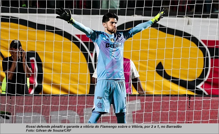 O Flamengo venceu o Vitória por 2 a 1, nesta terça-feira (10), no confronto que abriu a 3ª rodada do Campeonato Brasileiro. O chileno Pulgar marcou um golaço para abrir o palcar e Everton Cebolinha macaram para o Rubro-negro, ainda no primeiro tempo. O Leão da Barra diminuiu no começo da etapa final, com gol marcado por Matheuzinho. Logo em seguida, o goleiro argentino Agustín Rossi defendeu um pênalti cobrado por Renato Kayzer e garantiu o placar que deu a primeira vitória ao Flamengo no Brasileirão 2026.