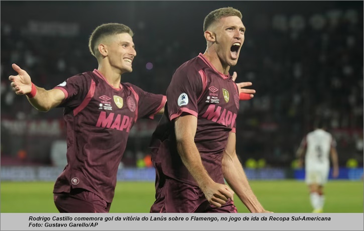 O Flamengo jogou mal contra o Lanús e perdeu por 1 a 0 no jogo da de ida da Recopa Sul-Americana, nesta quinta-feira (19), no Estádio Ciudad de Lanús, em Buenos Aires. Rodrigo Castillo marcou o gol da vitória do time argentino, que teve outros dois gols anulados por impedimento. Com o resultado, o Rubro-negro precisa vencer o jogo da volta por dois gols de diferença para conqusitar o troféu, na próxima quinta-feira (26), no Maracanã. Se vencer pela diferença de um gol, o confronto segue para a prorrogação. Persistindo o placar, o título será decidido nos pênaltis. Confira o compacto do confronto, logo abaixo.