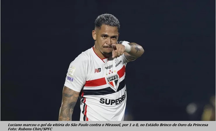 O São Paulo venceu o Mirassol por 1 a 0, nesta sábado (25), no Estádio brinco de Ouro da Princesa, em Campinas, pela 13ª rodada do Brasileirão 2026, e garantiu posição entre os quatro primeiros colocados no Campeonato Brasileiro. O Tricolor somou 23 pontos, e ficou com a mesma pontuação do Fluminense (3º) e do vice-líder Flamengo, que jogam neste domingo, e com dois pontos a mais que o Bahia (5º), que jogou neste sábado (25) contra o Santos e empatou em 2 a 2. O Mirassol permanece com 9 pontos, na zona do rebaixamento com três pontos a menos que o Corinthians que recebe o Vasco neste domingo, na Neo Química Arena. O Timão tem um ponto a menos que o Grêmio, primeiro fora do Z-4 e joga em casa contra o Cortiba, logo mais na Arena do Grêmio.